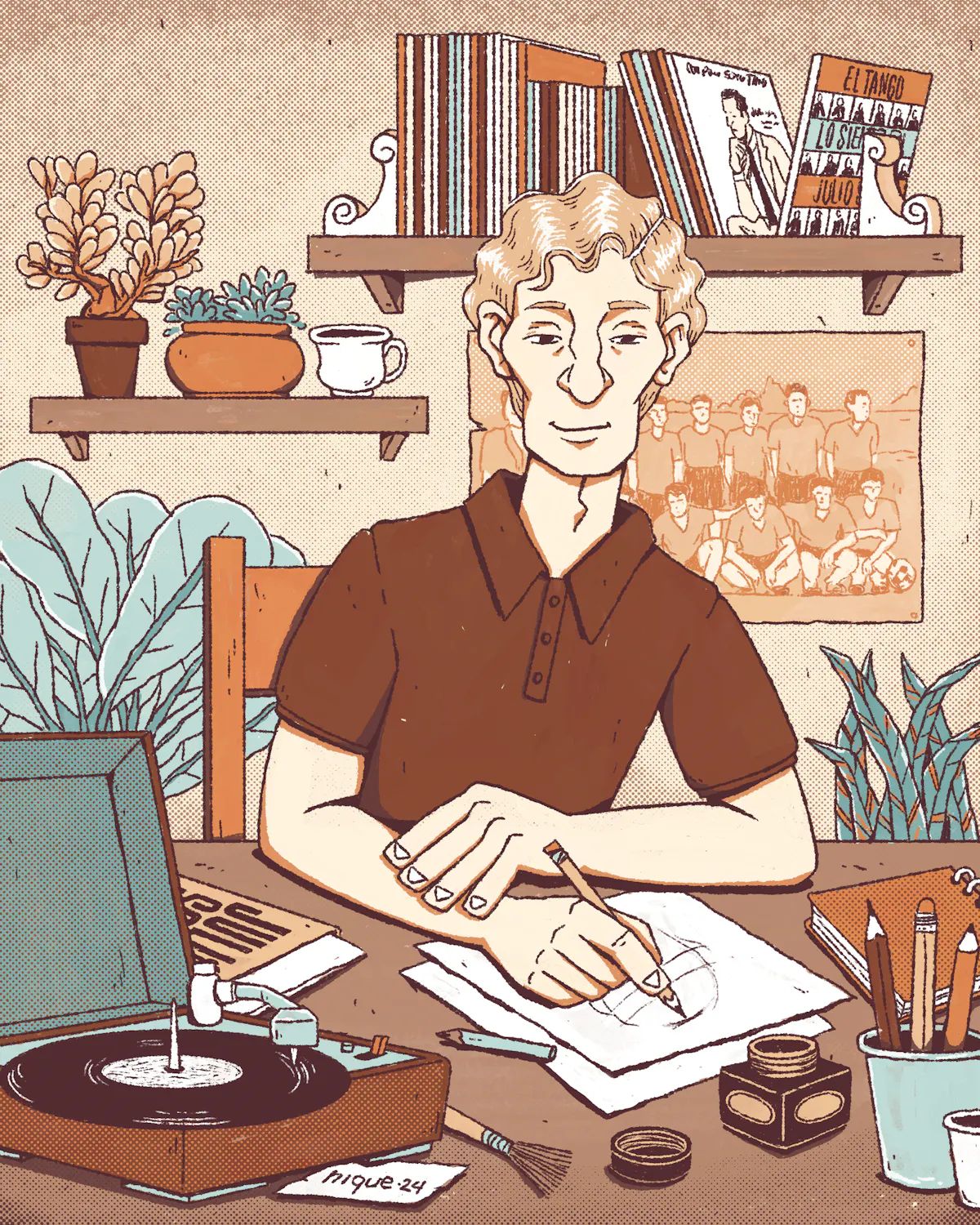 Después de horas en su escritorio, Rutilo se levantó de la silla para dar vuelta el disco de Julio Sosa.